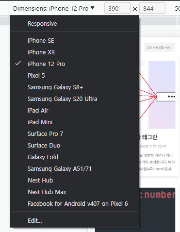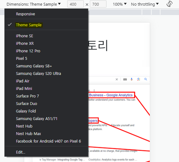 브라우저내에서 지원하는 Device Mode인데요.