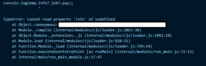 하지만 Optional Chaining으로 받아올 경우 아래와 같이 emp가 undefined인데도 .으로 접근하다보니 에러가 납니다.