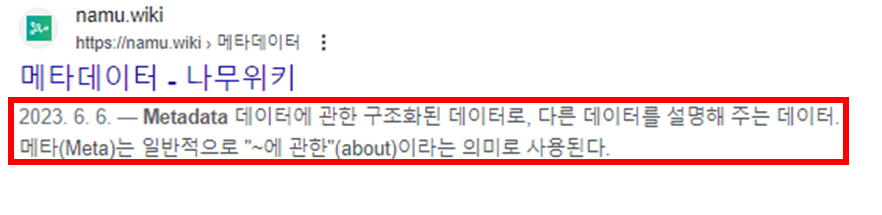 위와 같이 메타 디스크립션은 타이틀 하단에 간략하게 표기되는 부분을 뜻합니다.
